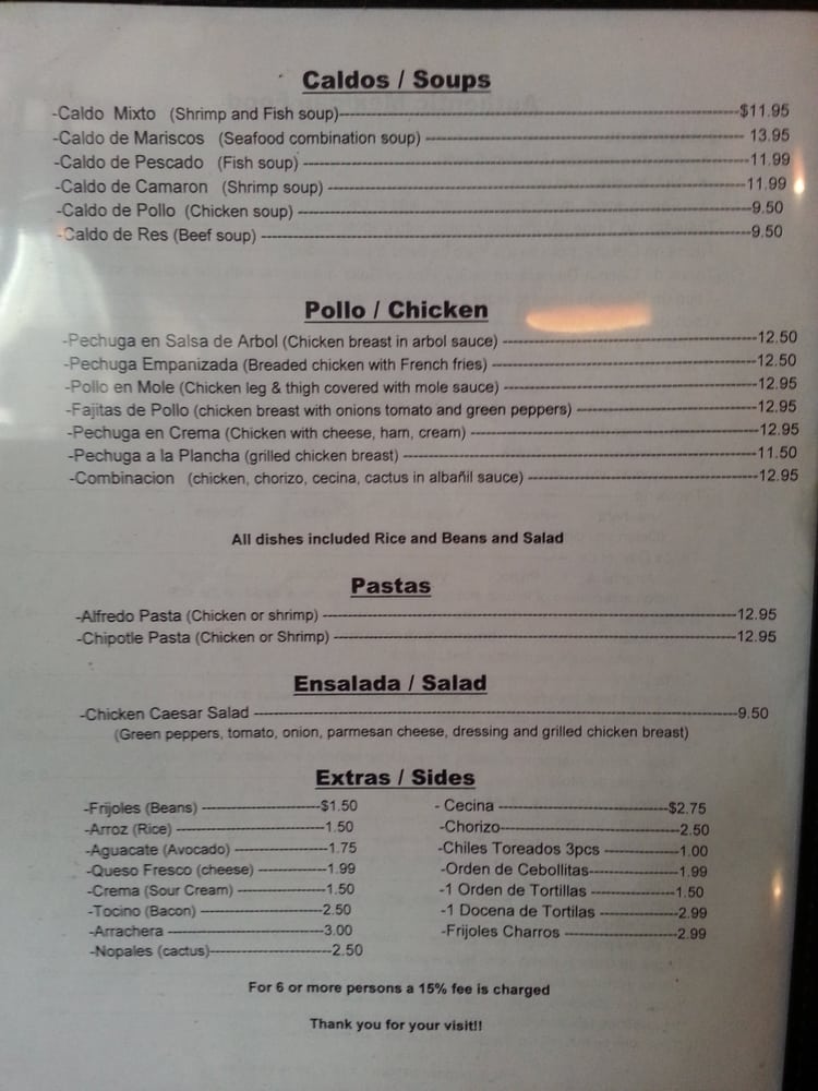 A mixture of cactus, mushrooms, soyrizo and our specialty sauce. Accompanied with beans, rice, salad and delicious homemade tortillas.