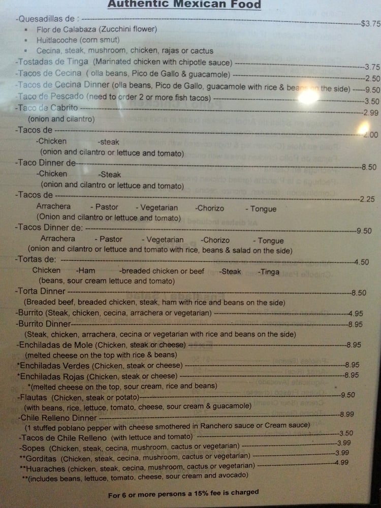 Cactus, huitlacoche, mushrooms, potatoes, rajas, soyrizo, vegan meat or zucchini flower.